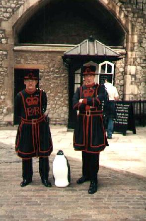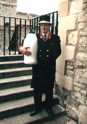 With two Beefeaters at Tower of London |