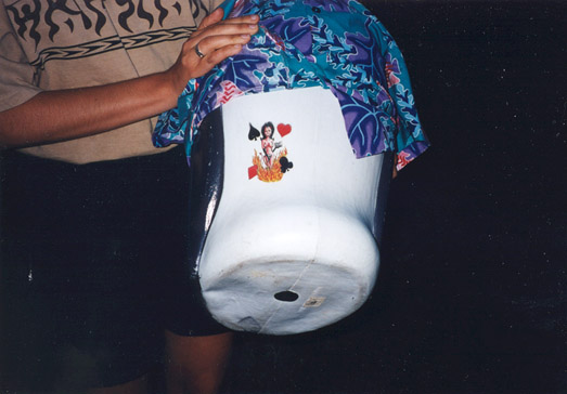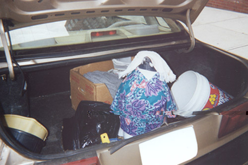 As you can see from the photos below, the Penguin was treated mercilessly by the PLA! As well, you can tell it was a professional operation as the license plate was cut out of the picture of the Penguin in the kidnapper's car trunk. Much later that evening, after copious amounts of beer and wine were consumed, the Penguin suddenly appeared on a park bench for a very joyful reunion. The Penguin appeared to be unharmed from his ordeal although he did acquire a rather risqué tattoo!