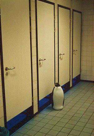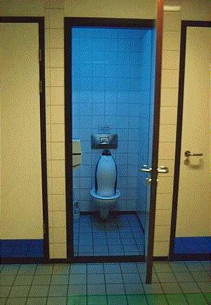 Inside a washroom - ultra-clean, cool blue light and piped in opera music! |